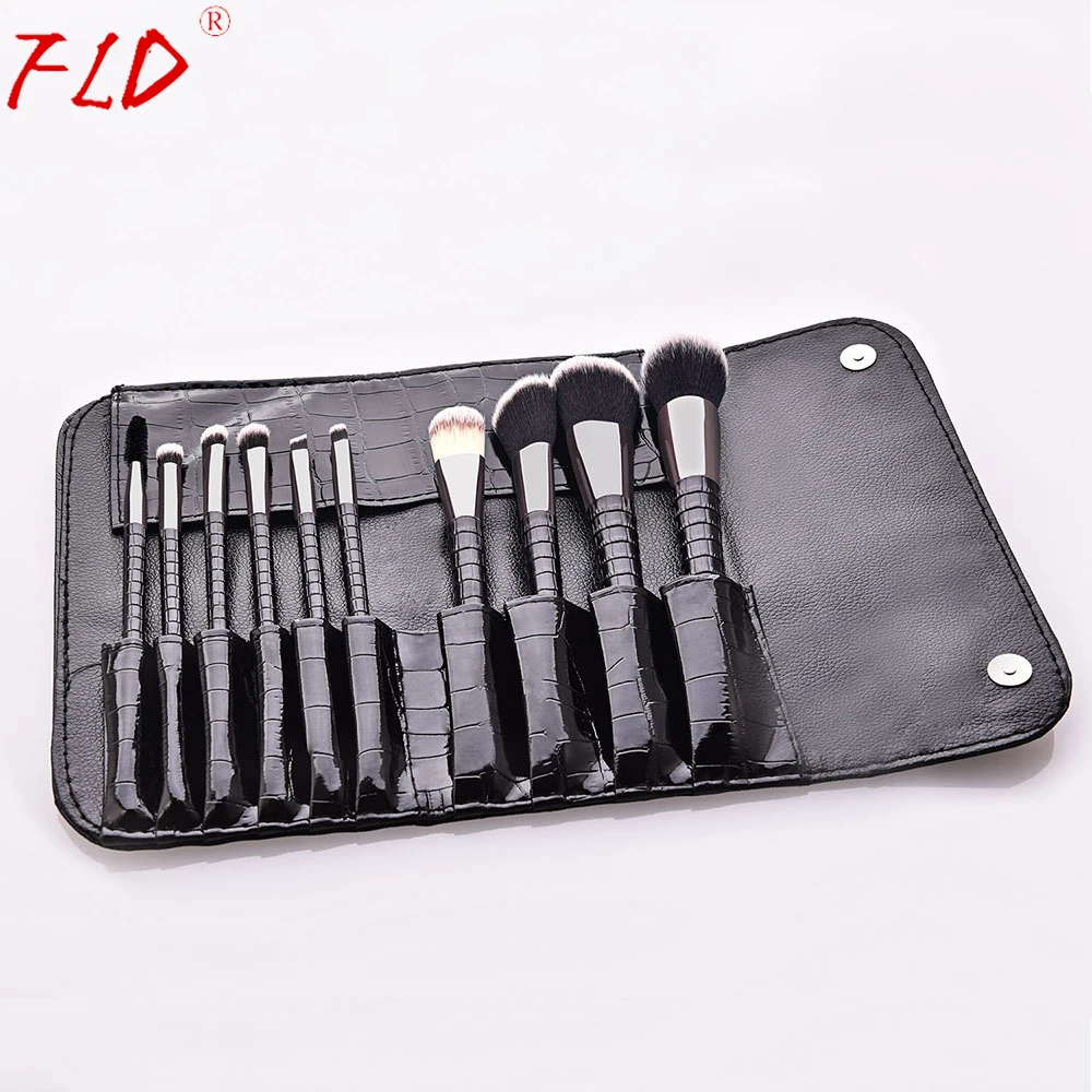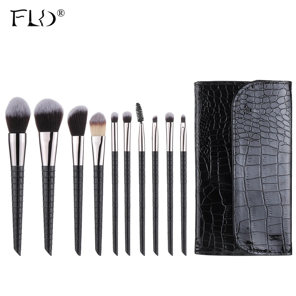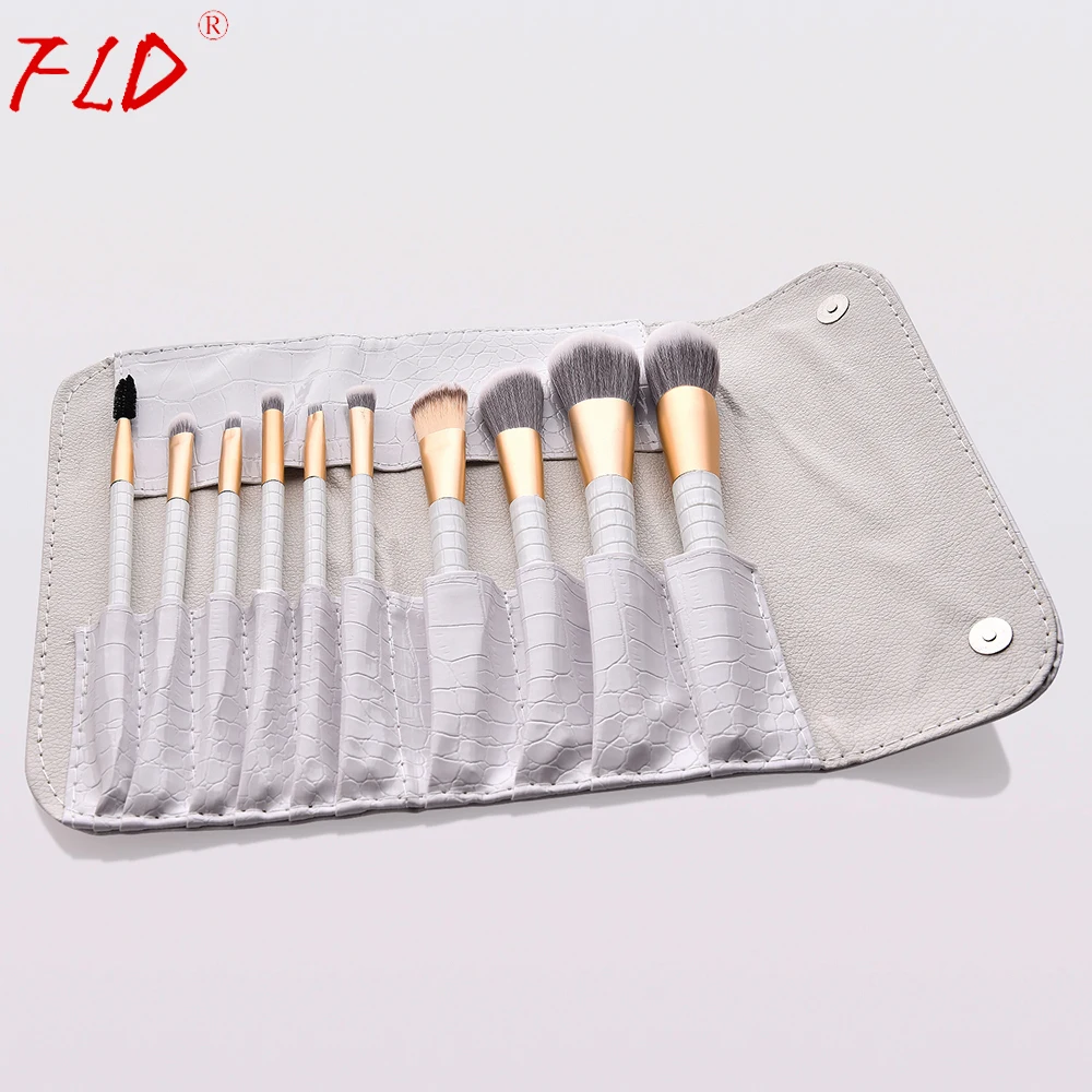 FLD Wood Handle 10Pcs Professional Makeup Brush Set Eyeliner Eyebrow Eyelash Brushes Set Foundation